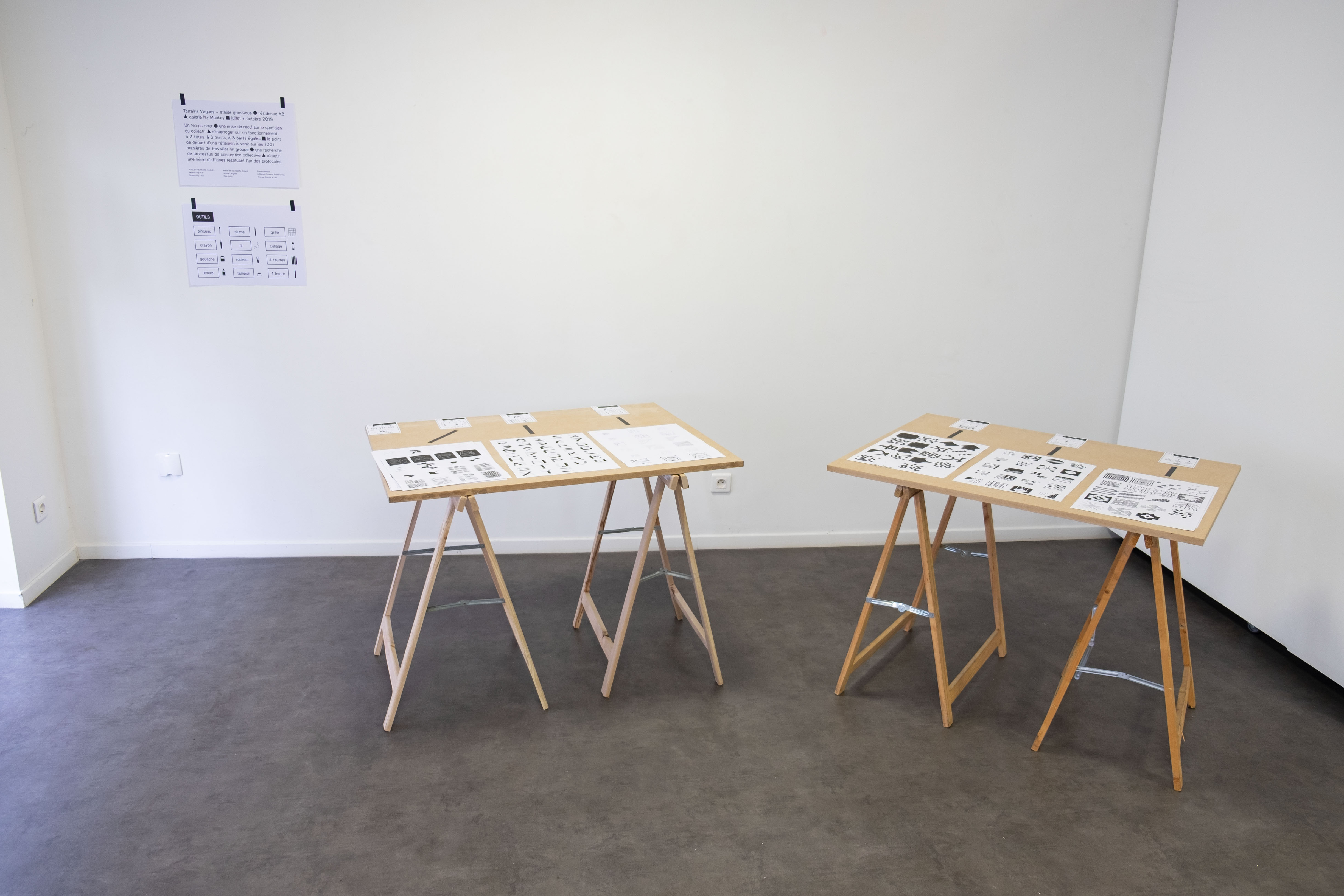 Après leur résidence d’une semaine à la galerie My monkey, le collectif Terrains Vagues présentera une restitution au public. Divers procédés de création d’images par combinaisons ont été mises au point en lien avec la risographie. Une série d’affiches sera présentée.