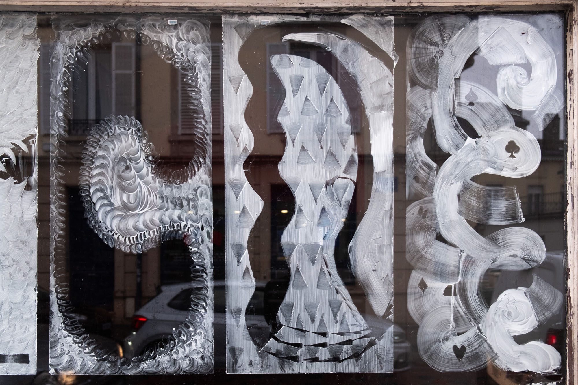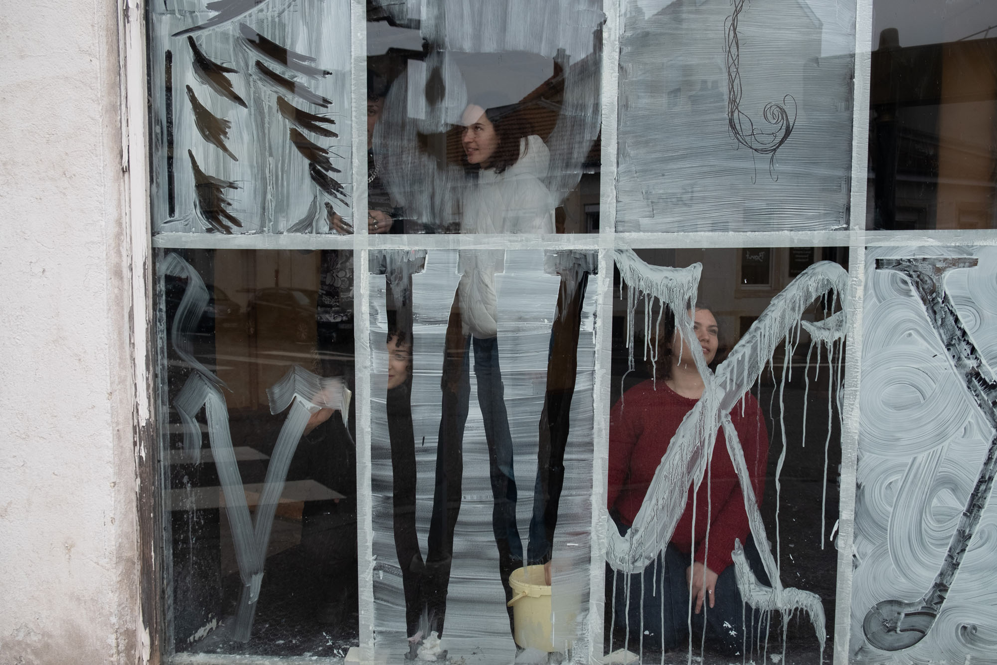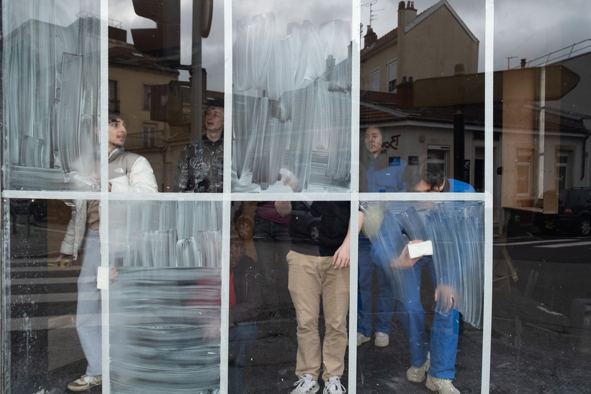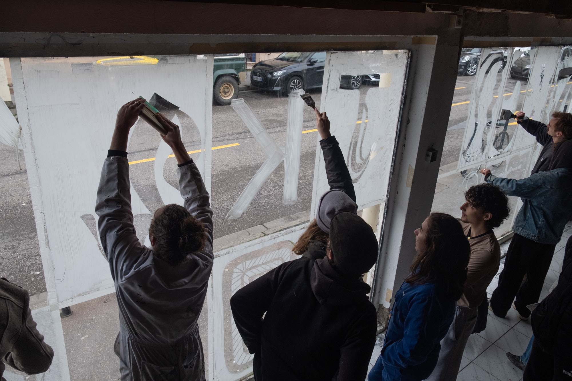 En une journée, ils ont produit ensemble une œuvre dans l’espace urbain, sur les désormais célèbres vitrines “Go-fast” de la galerie.