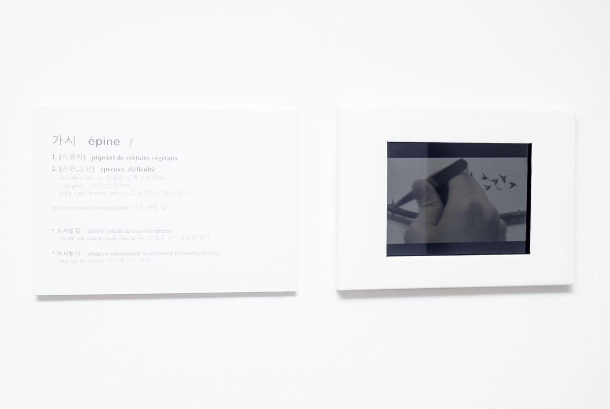 Partant de définitions officielles du dictionnaire, des « vrais » mots, Su-Min adopte une approche visuelle, par le texte et la vidéo, pour proposer ses propres définitions.