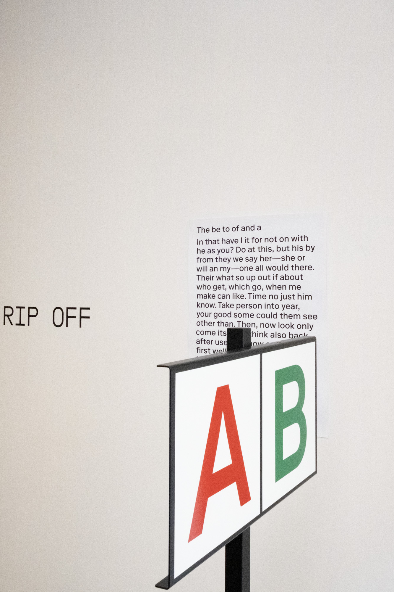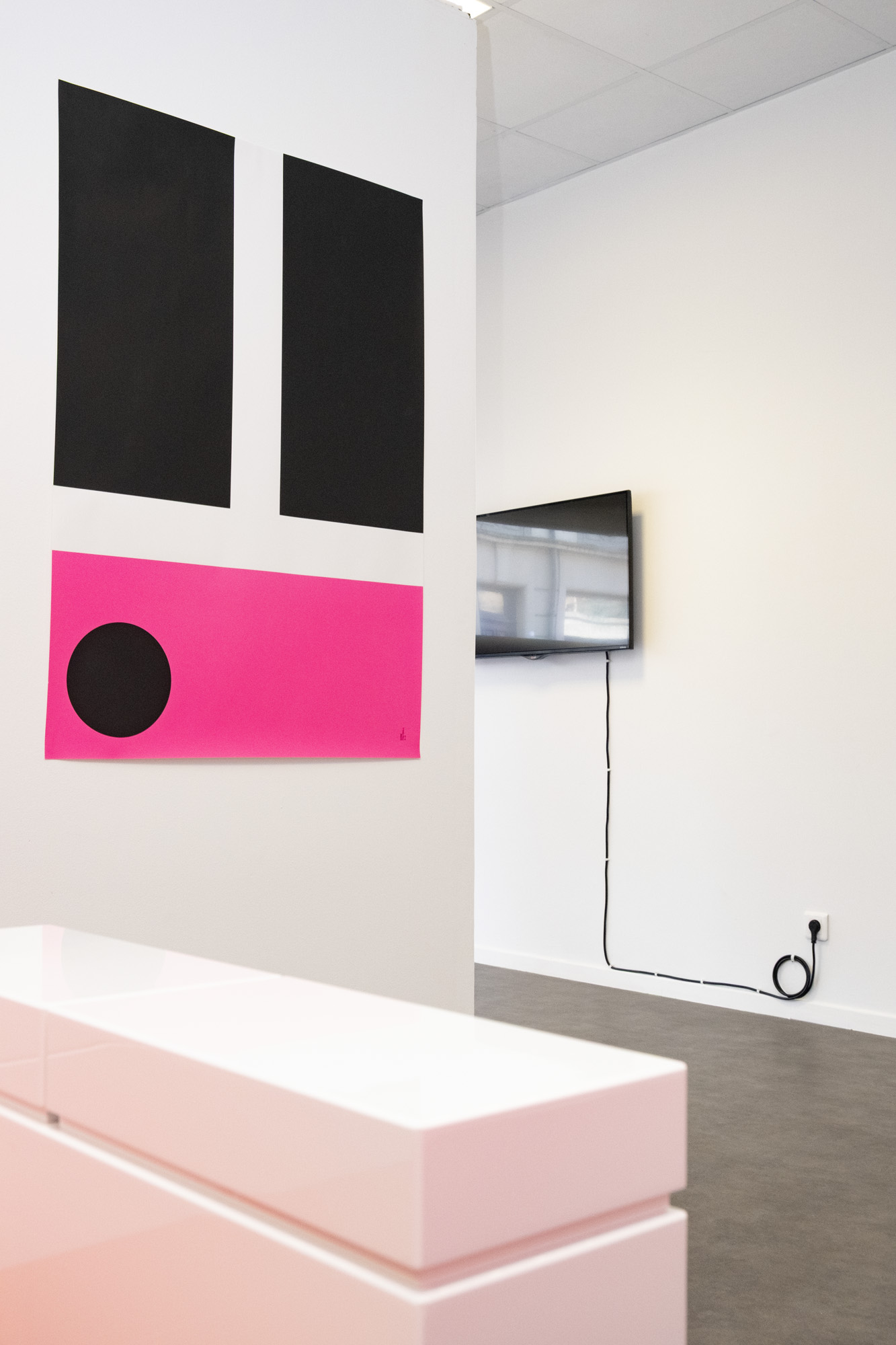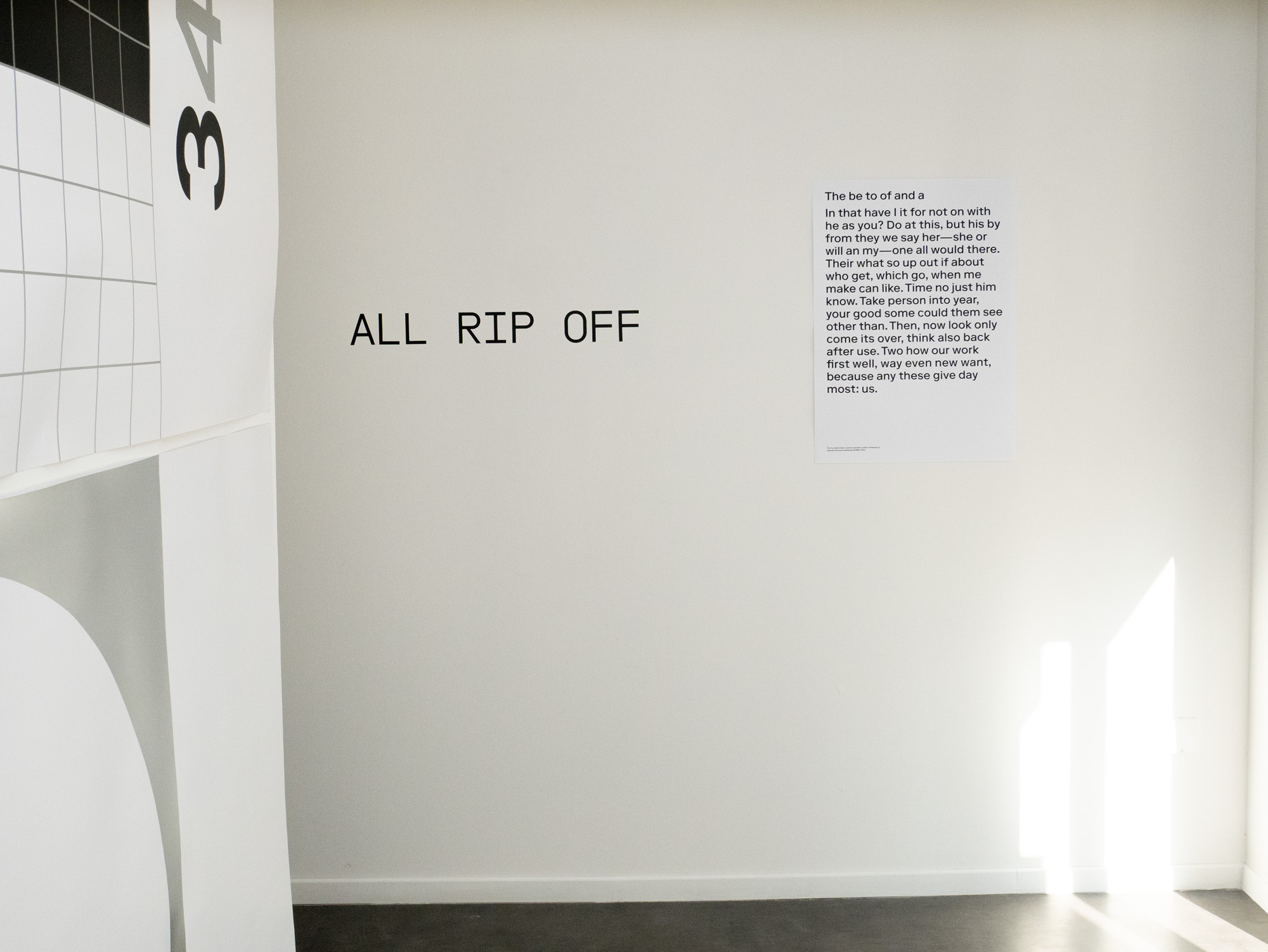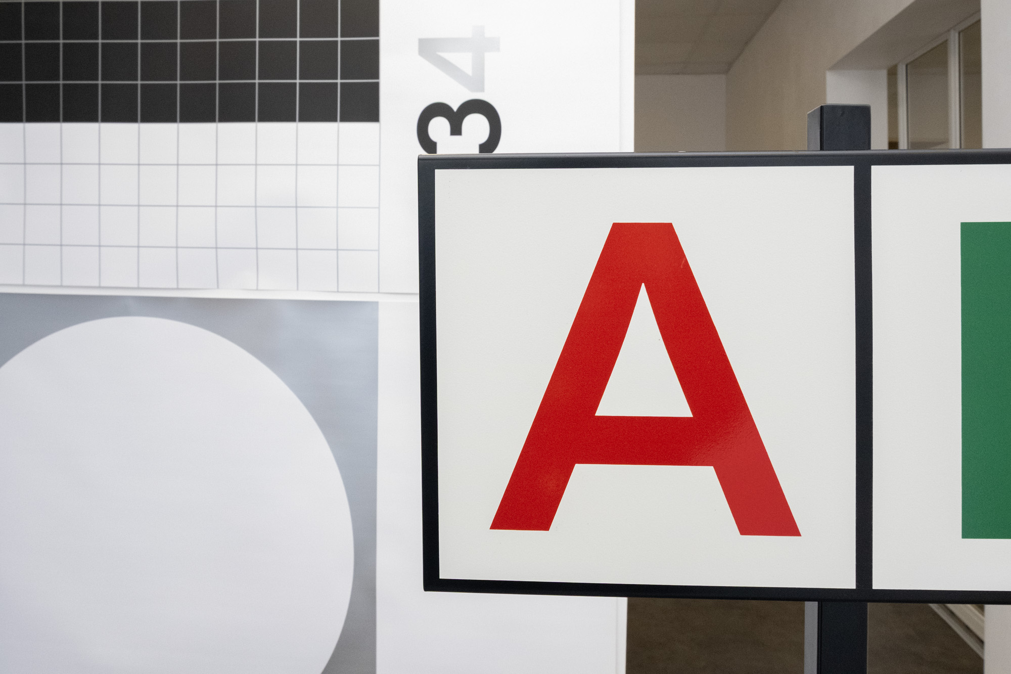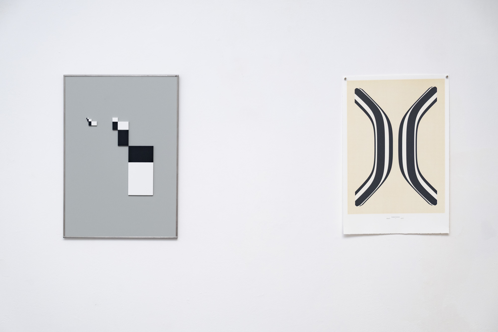 For the exhibition “the be to of and a” at My Monkey Gallery, NORM presents a selection of loosely connected, two- and three-dimensional objects. The exhibits revolve around reduction, perception and abstraction: the edge of letters (a, b, c); the borders of identity (d); fragments of Dimension of Two (e, f); games in relation (g, h); combinatorics (i) and the importance of punctuation (j):