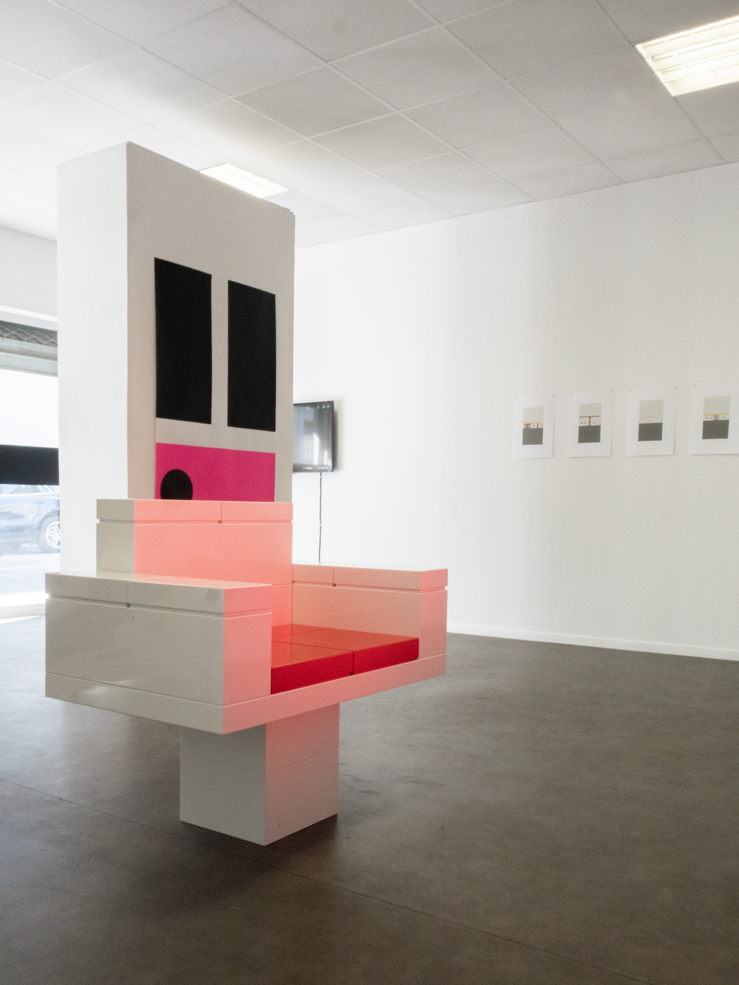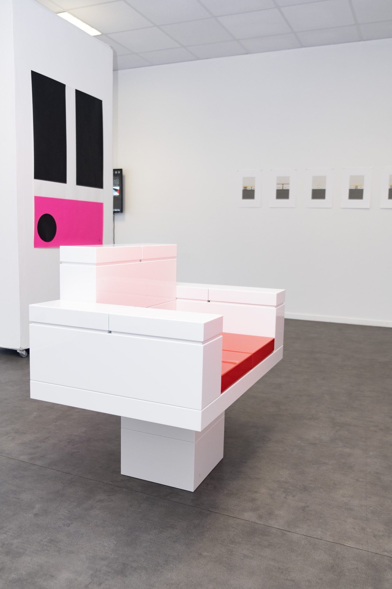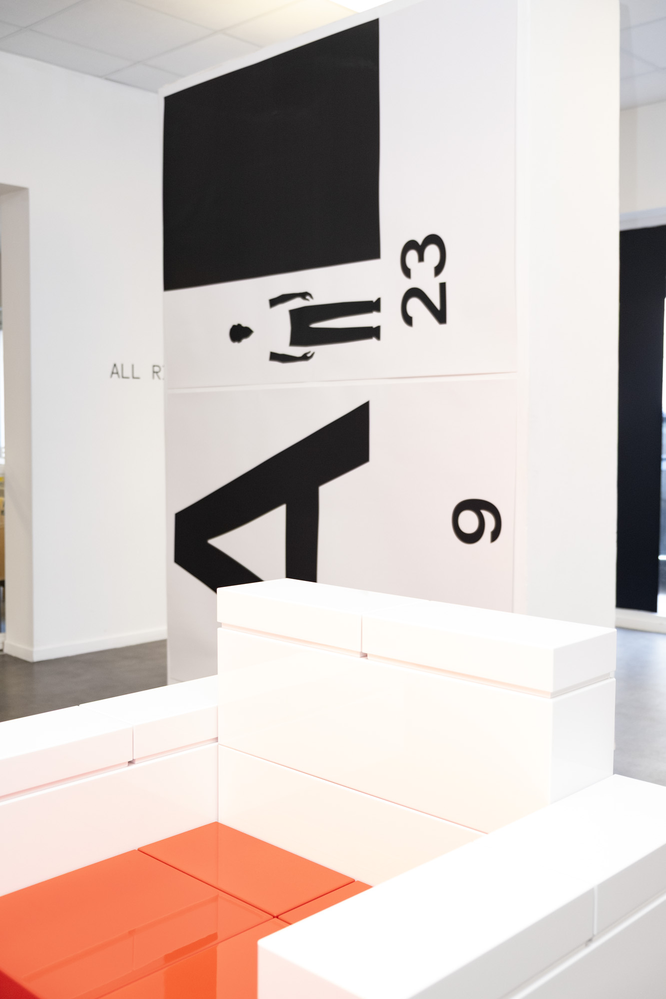 Pour l’exposition « the be to of and a » à la galerie My monkey, NORM présente une sélection d’objets bidimensionnels et tridimensionnels librement connectés. Les objets exposés tournent autour de la réduction, de la perception et de l’abstraction : la limite des lettres (a, b, c) ; les frontières de l’identité (d) ; des fragments de Dimension of Two (e, f) ; l’échelle des jeux (g, h) ; la combinatoire (i) et l’importance de la ponctuation (j) :