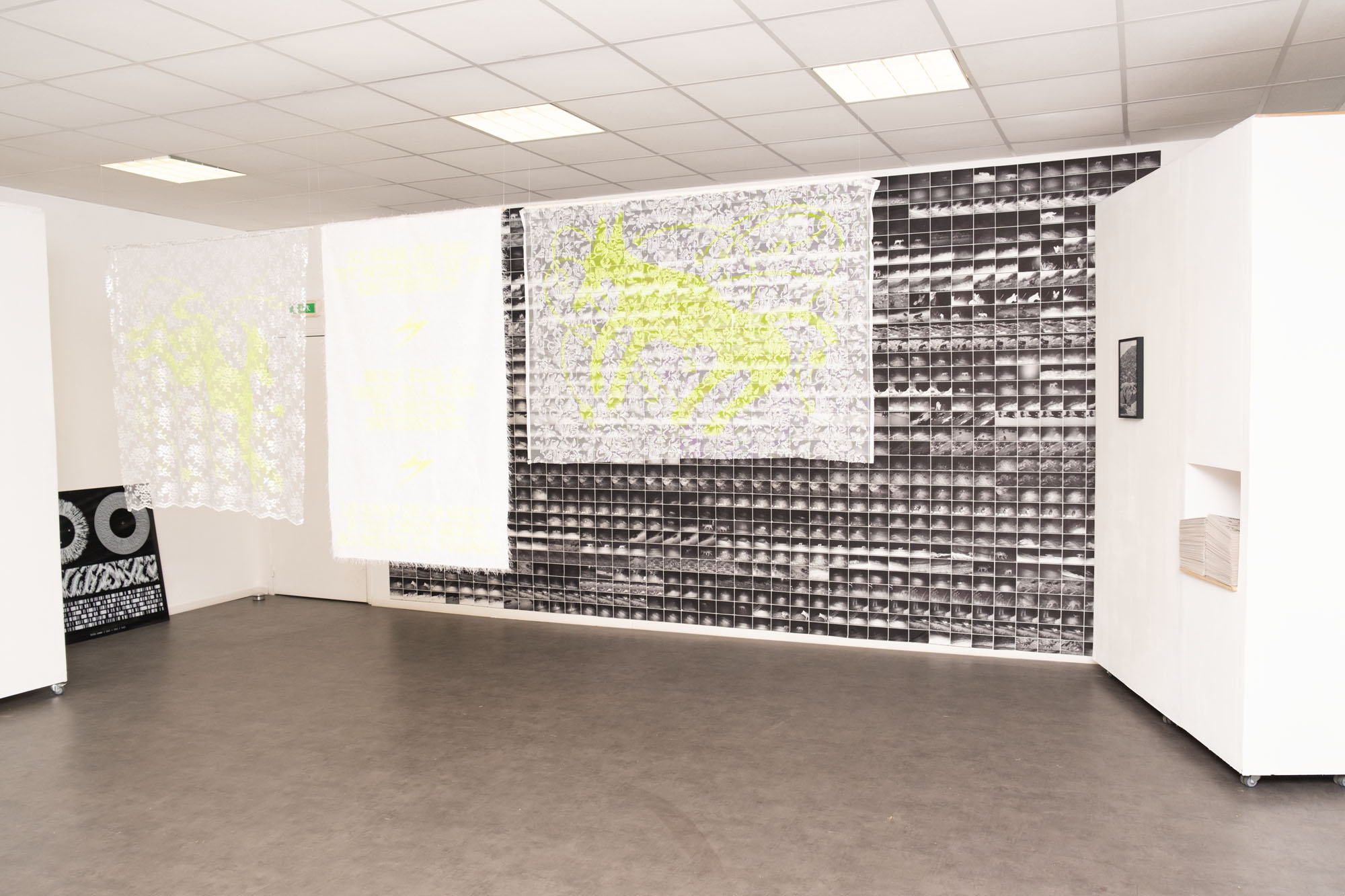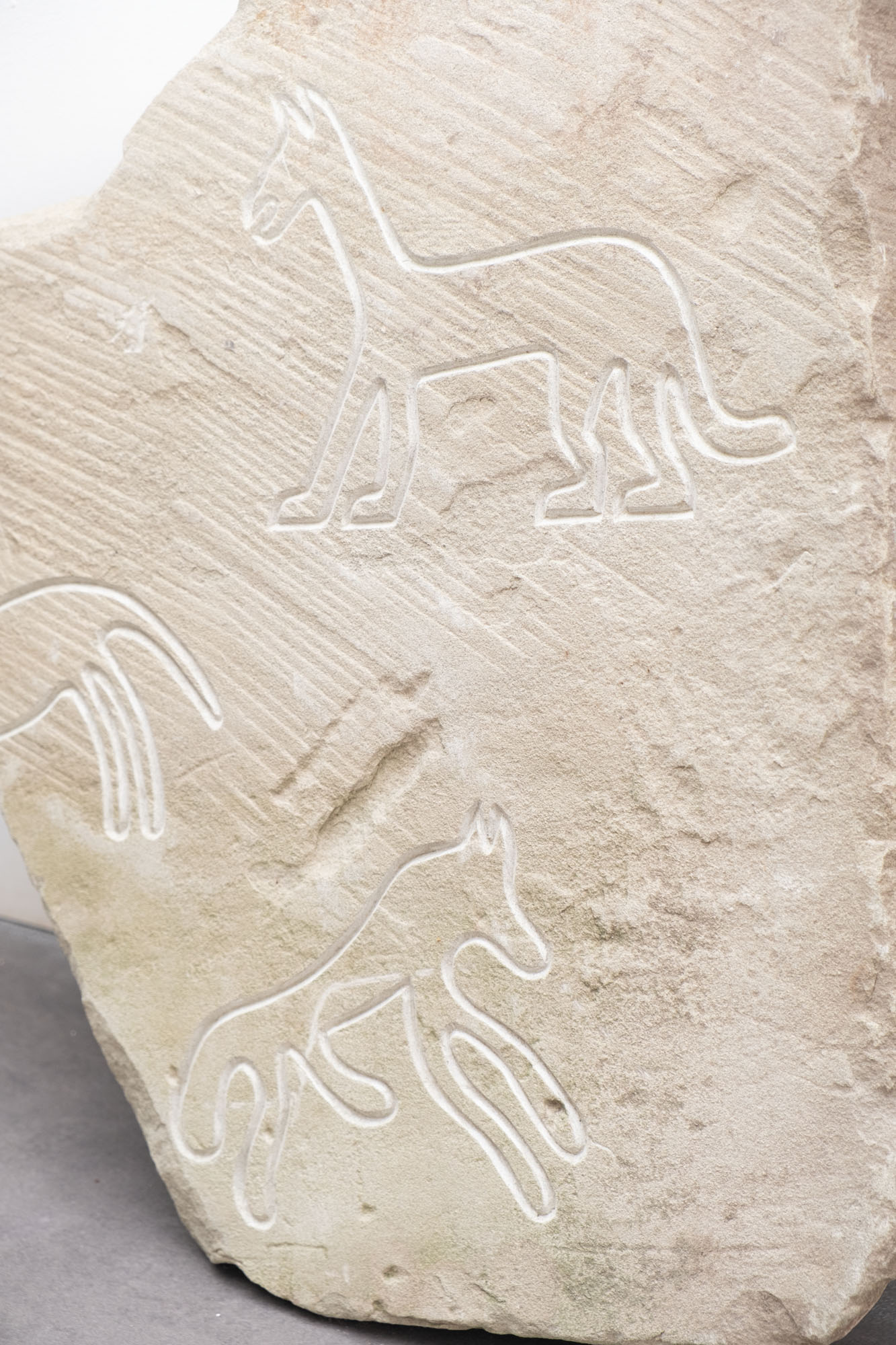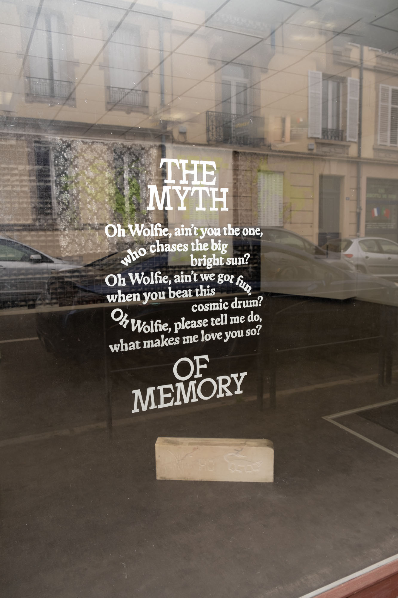 En effectuant des recherches approfondies et en collectant un large éventail de récits de loups, Offshore établit une archive des intrigues, des leitmotivs et des politiques cachées des mythologies du loup. Dans une tentative de réflexion sur leur rôle vital dans la construction de la mémoire et de la communauté, ces histoires sont déconstruites et rassemblées dans de nouvelles constellations poétiques. Des collages de textes et des poèmes en maillage proposent un ensemble de souvenirs alternatifs et sont ensuite matérialisés par les médias, l’artisanat et l’esthétique qui sont traditionnellement utilisés pour construire l’histoire. Gravures sur pierre, sculptures commémoratives ou typographie folklorique sont appropriées et nouvellement interprétées pour créer des espaces de projections narratives et de provocation. Ainsi, les loups du passé et du présent peuvent se rencontrer et leur juxtaposition offre de nouvelles façons de lire les mythes et les souvenirs à travers le temps, l’espace et l’idéologie. En proposant cette nouvelle perspective, The Myth of Memory réfléchit à la relation complexe entre les humains et les autres animaux à travers les récits et pose la question urgente de savoir comment nous voulons mémoriser et nous souvenir du passé, afin de façonner notre avenir multi-espèces.