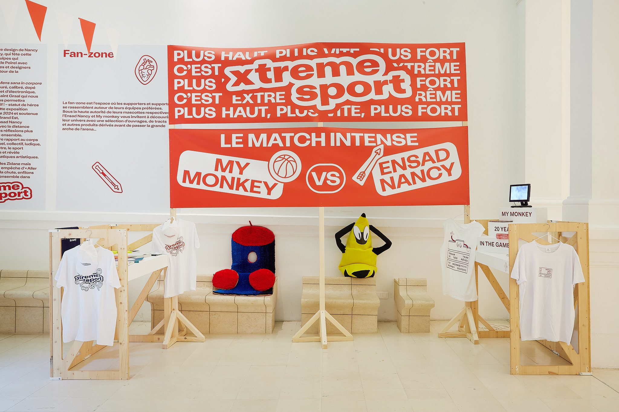 La galerie My monkey, qui fête aujourd’hui ses vingt ans, et l’École nationale supérieure d’art et de design de Nancy (Ensad Nancy) sont les deux équipes qui s’affrontent sur le terrain des galeries Poirel avec une sélection d’une vingtaine d’artistes et designers issus de leurs écuries respectives autour de la thématique du sport.